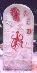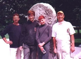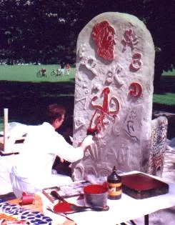 zwei Wochen einen etwa 3 m großen Druckstock aus Beton mit dem Wappen