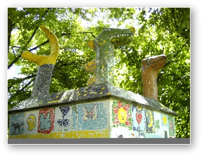 Die 3 Dachskulpturen mit Dachmosaik
